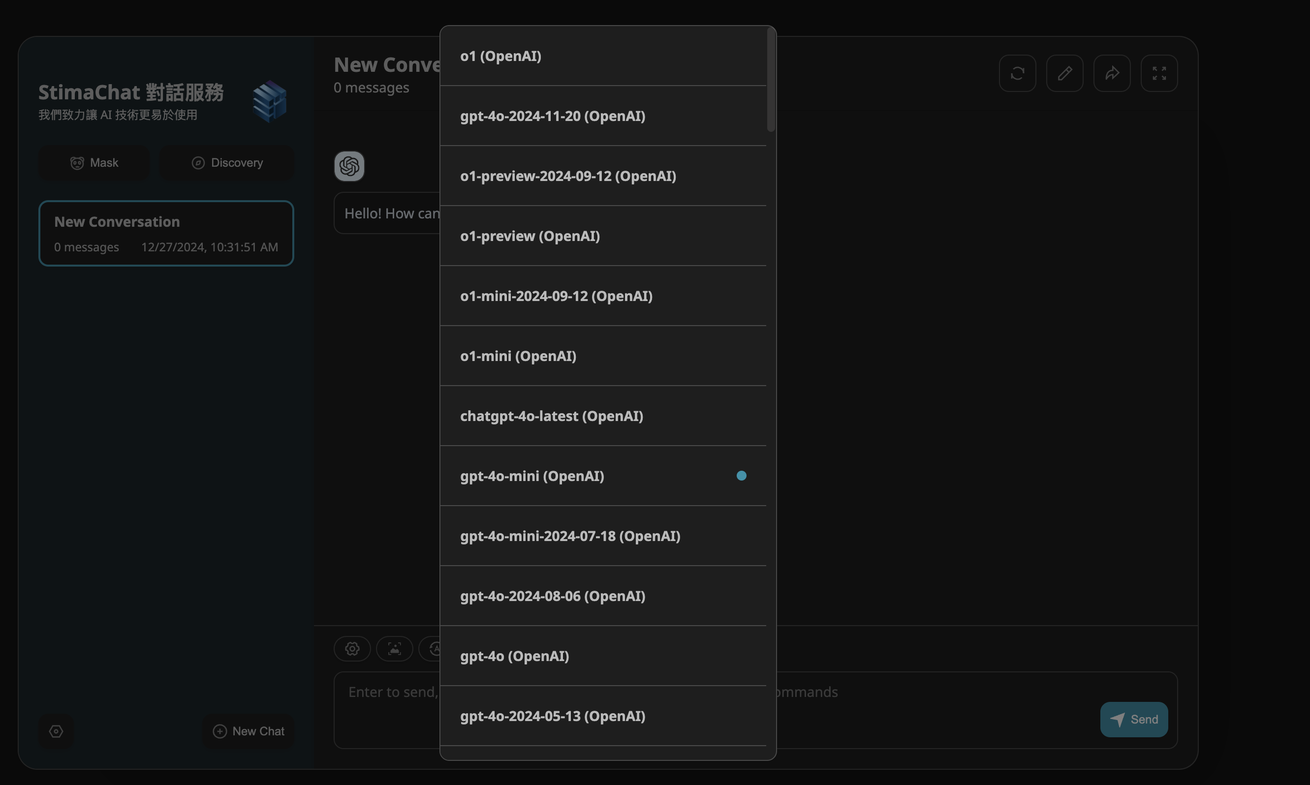 Once in the interface, click the [New Chat] button at the bottom.